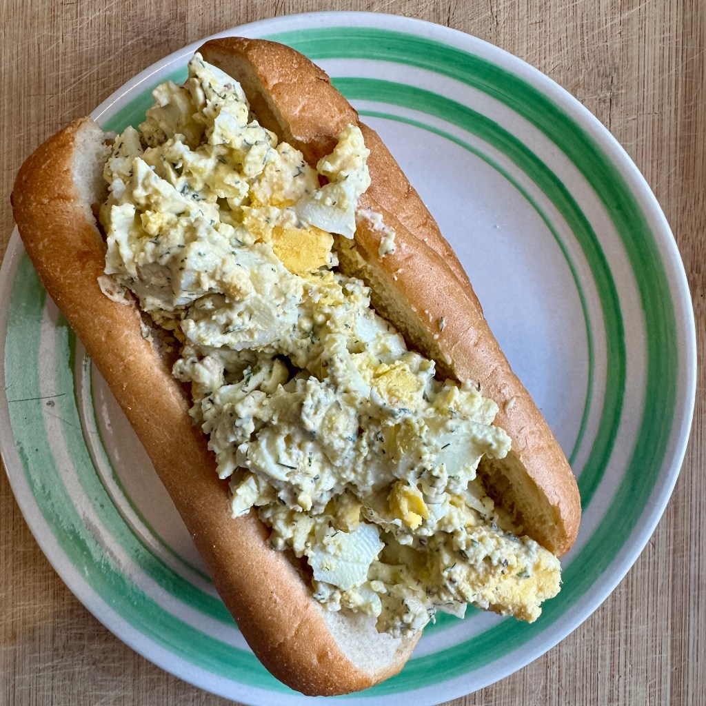 A simple no-peel egg salad for folks like me who detest shelling all those eggs!